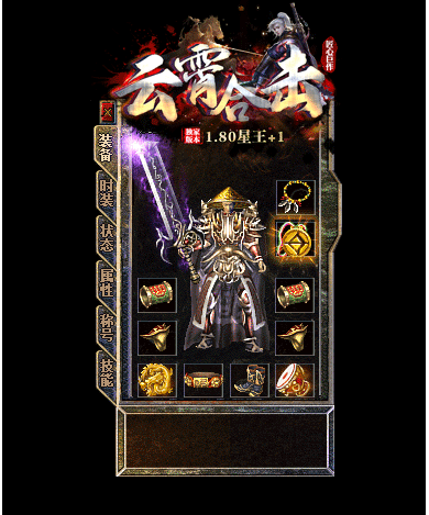 装备介绍:赤月-雷霆-战神-星王-云霄【终极】,一切靠打,无任何合成系统!